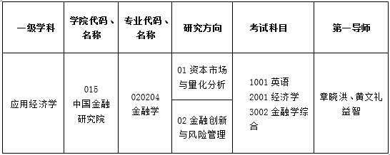 ued体育 中国金融研究院2021年博士研究生招生专业目录