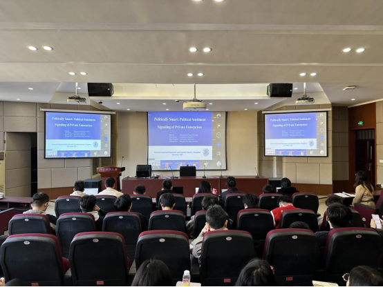 上海交通大学的吴文锋教授做了题为“Politically Smart: Political Sentiment Signaling of Private Enterprise”的主旨报告,探讨了民营企业对于政府和国家的政治情绪信号,分析了其成因及影响。