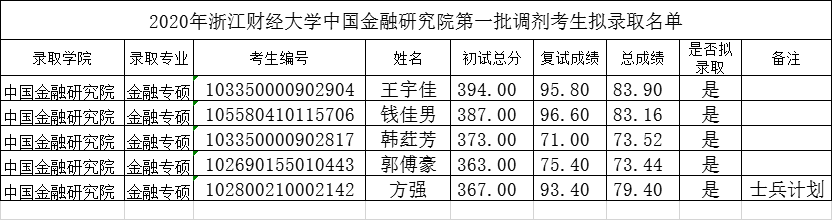 经ued体育中国金融研究院硕士研究生复试专家小组复试,2020年ued体育中国金融研究院金融专硕研究生第一批调剂考生拟录取名单如下,现予以公示(公示期10个工作日)。如有异议,请联系我院研究生办公室,联系电话:0571-86735252,联系人:杨老师。