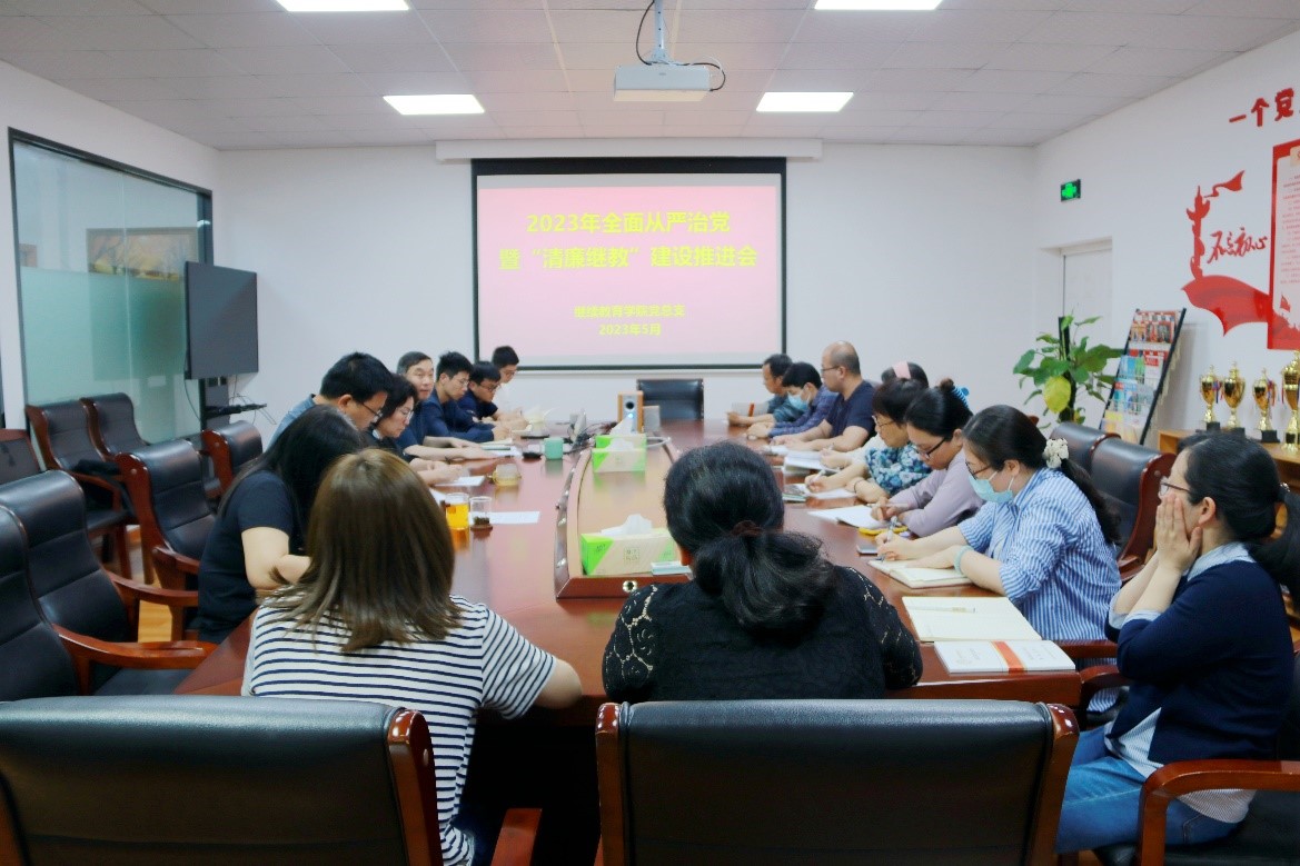 5月17日,学院党总支召开2023年全面从严治党暨“清廉继教”建设推进会,深入学习贯彻党的二十大精神和习近平总书记重要讲话精神,认真落实上级有关全面从严治党工作要求,总结部署学院全面从严治党和“清廉继教”建设工作。学院班子成员和全体党员、教工参加会议,会议由党总支书记王聪主持。