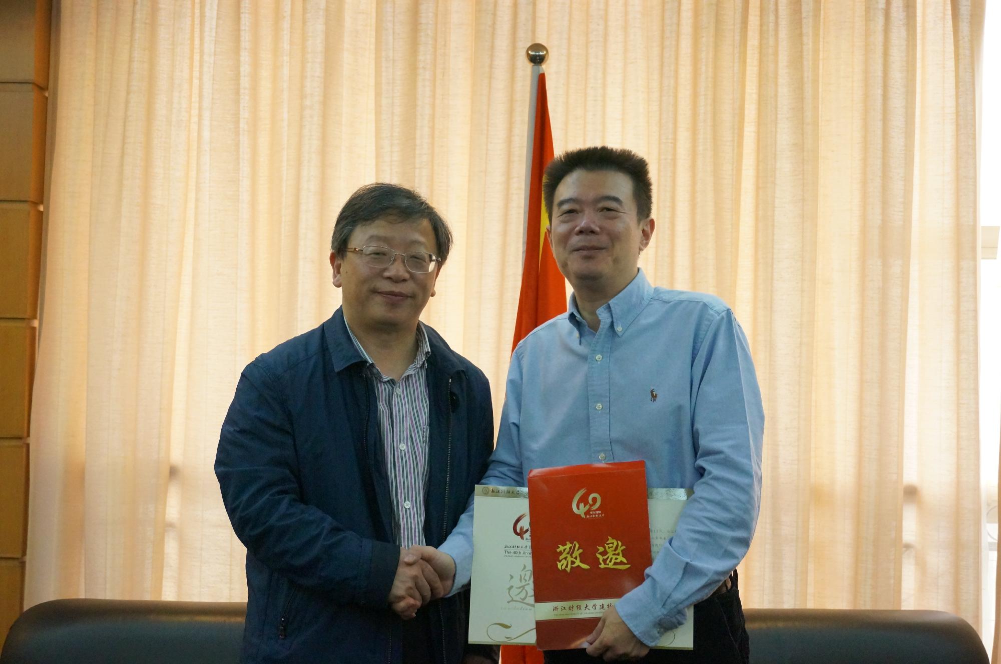 钟晓敏教授向徐斌总经理介绍了我校及中心近年来取得的成果,尤其分享了我校在留学生培养、获批博士后流动站以及设立博士点等方面的喜讯,徐斌总经理由衷表示祝贺。期间,由于徐斌总经理是我校校友,钟晓敏教授还邀请徐斌总经理于11月8日回母校参加40周年校庆。