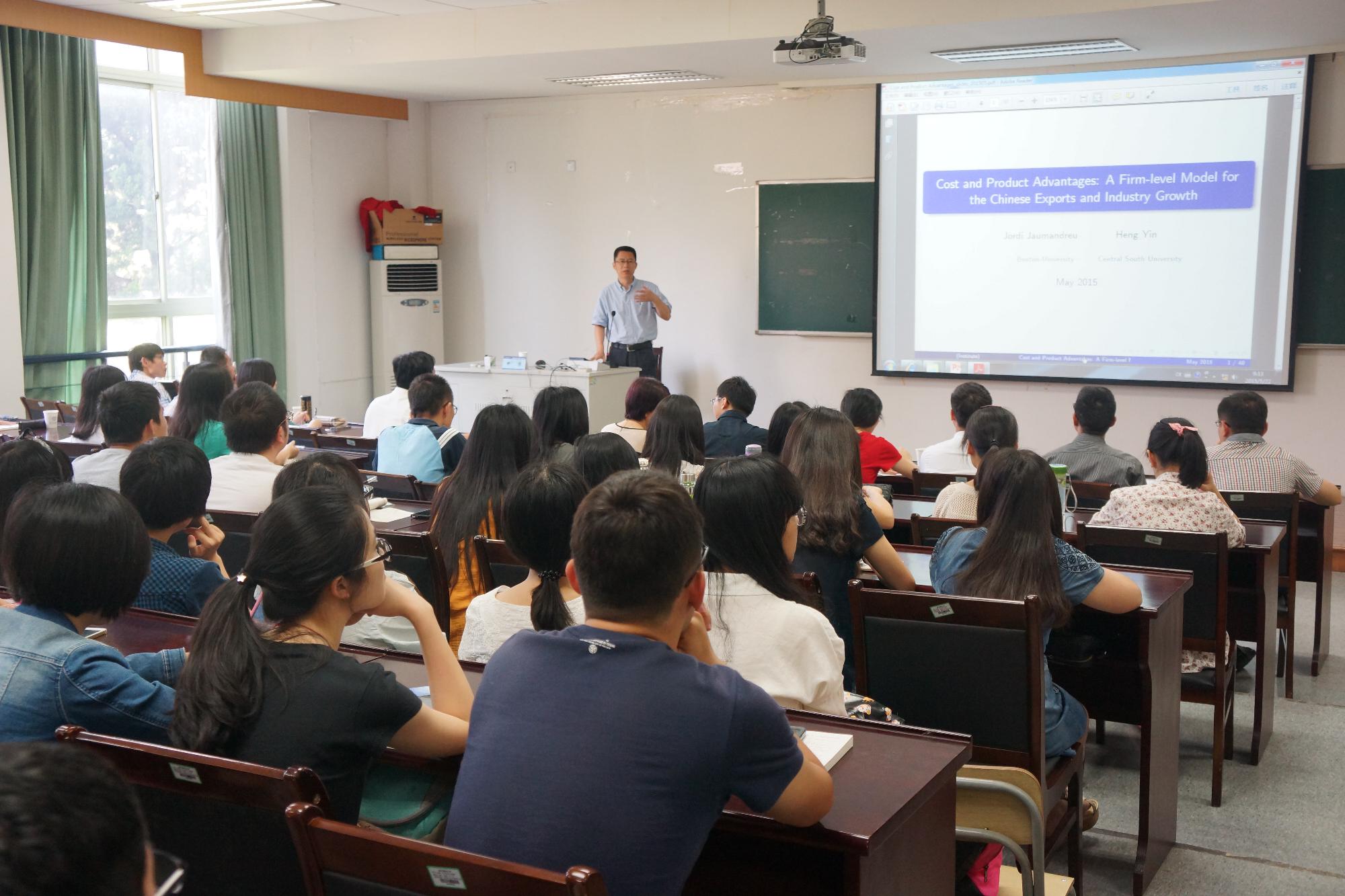 5月22日上午,中南大学商学院院长尹恒教授向中心师生报告了论文《Cost and Product Advantages: A Firm-level Model for the Chinese Exports and Industry Growth》。