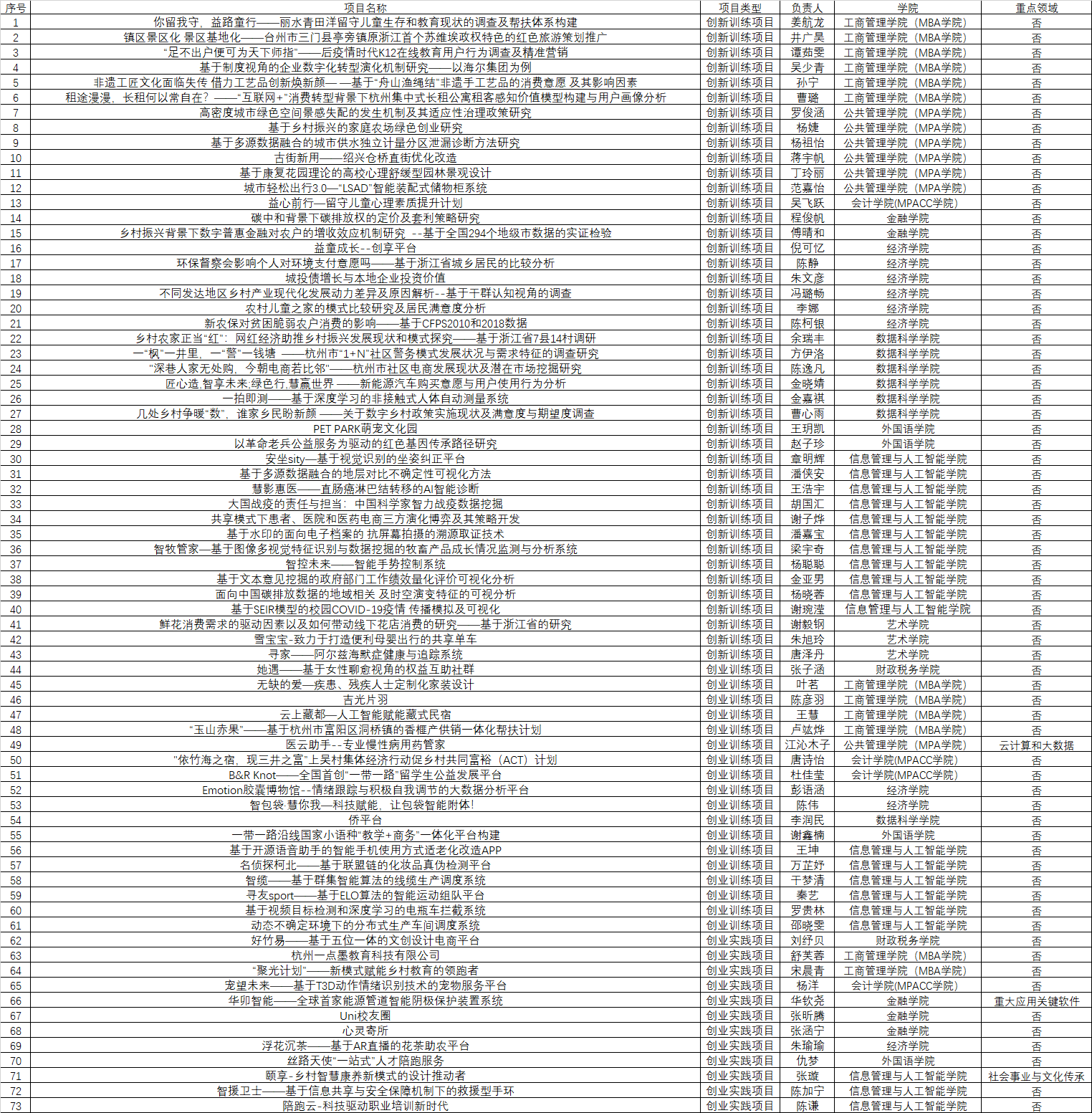 根据《关于开展2020年国家级大学生创新创业训练计划项目孵化工作的通知》,组织相关专家评审本着公平、公正的原则对项目进行复审。参照省内相关文件最终推荐立项创新训练43项,创业训练18项,创业实践12项,其中根据相关要求及项目所属领域,遴选出3项重点领域项目。现公示如下: