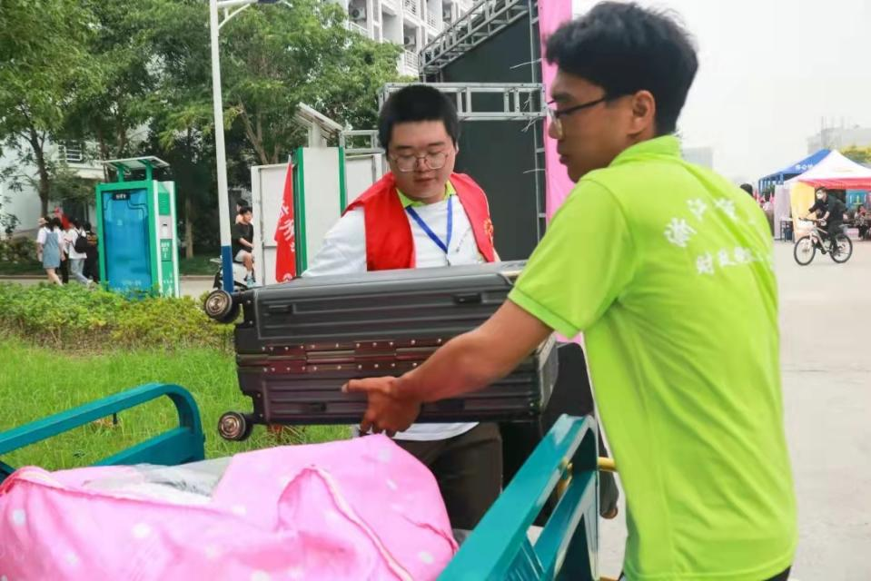 当天,迎新志愿者们或帮忙搬运行李,或引导办理手续,身影异常忙碌,让全体新生们感受到了来自学院和学长学姐们的殷切关怀。