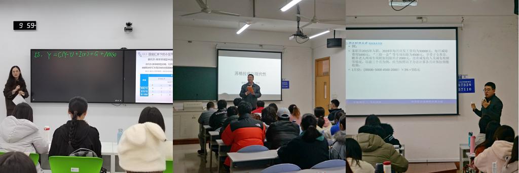 本次集体听课,听取了《宏观经济政策分析》、《中国税制》和《古典政治——经济经典著作导读》三门课程。我院教师备课充分、上课投入、互动多样,教学效果良好;学生精神状态饱满、出勤率高、听课积极,学习态度端正。通过创新教育教学方法,探索更多授课形式;通过理论与实践相结合、文字与图片视频相结合等学生喜闻乐见的方式,将学习方法、思维方式教授给学生,激发学生的学习兴趣,调动学生的积极性和主动性,提升学生的综合能力。同时,本次活动也让参与听课的青年教师有所收获,从而促进他们继续磨练课堂教学基本功,切实提高课堂教学水平。课后,针对每位执教老师的课堂,听课组进行了认真的点评,梳理出值得借鉴的经验,也客观地指出有待改进的问题,进而提出有针对性的建议及改进措施。