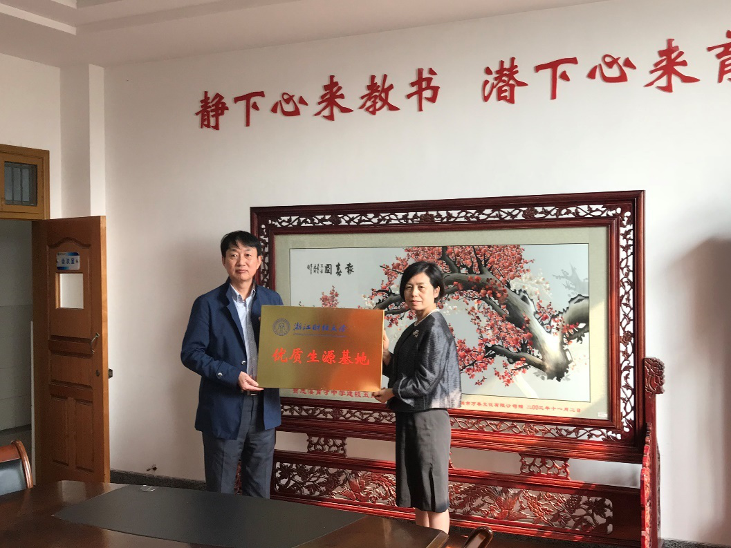 为积极响应大学招生宣传工作安排,4月25日,我院党委书记杨春玲、副书记徐丽玲一行赴慈溪市五大知名高中:慈溪中学、慈溪市浒山中学、慈溪市实验高级中学、慈溪育才中学、慈中书院开展招生宣传工作,并举行“优质生源基地”授牌仪式。
