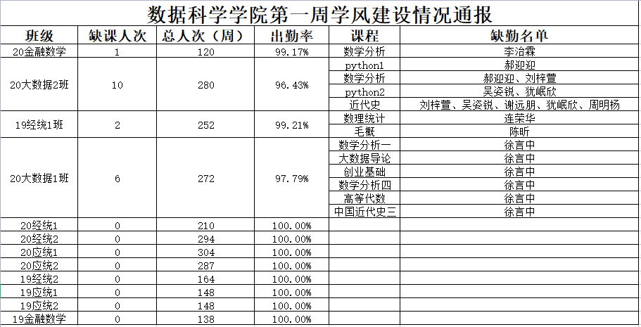 为进一步培育优良学风,构建我院学风建设的长效机制,营造良好的学习氛围,推进内涵建设,构建优良院风,学院对所有大一、大二班级课前进行了全覆盖点名。现将点名情况做如下通报。