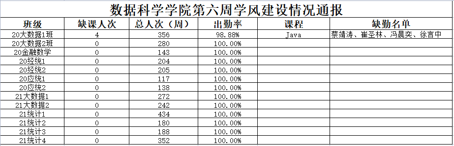 为进一步培育优良学风,构建我院学风建设的长效机制,营造良好的学习氛围,推进内涵建设,构建优良院风,学院对所有大一、大二班级统一上的课程进行了课前全覆盖点名。现将点名情况做如下通报。
