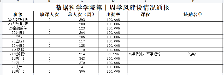 为进一步培育优良学风,构建我院学风建设的长效机制,营造良好的学习氛围,推进内涵建设,构建优良院风,学院对所有大一、大二班级统一上的课程及晚自习进行了课前全覆盖点名。现将点名情况做如下通报。