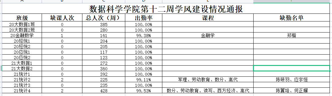 为进一步培育优良学风,构建我院学风建设的长效机制,营造良好的学习氛围,推进内涵建设,构建优良院风,学院对所有大一、大二班级统一上的课程及晚自习进行了课前全覆盖点名。现将点名情况做如下通报。