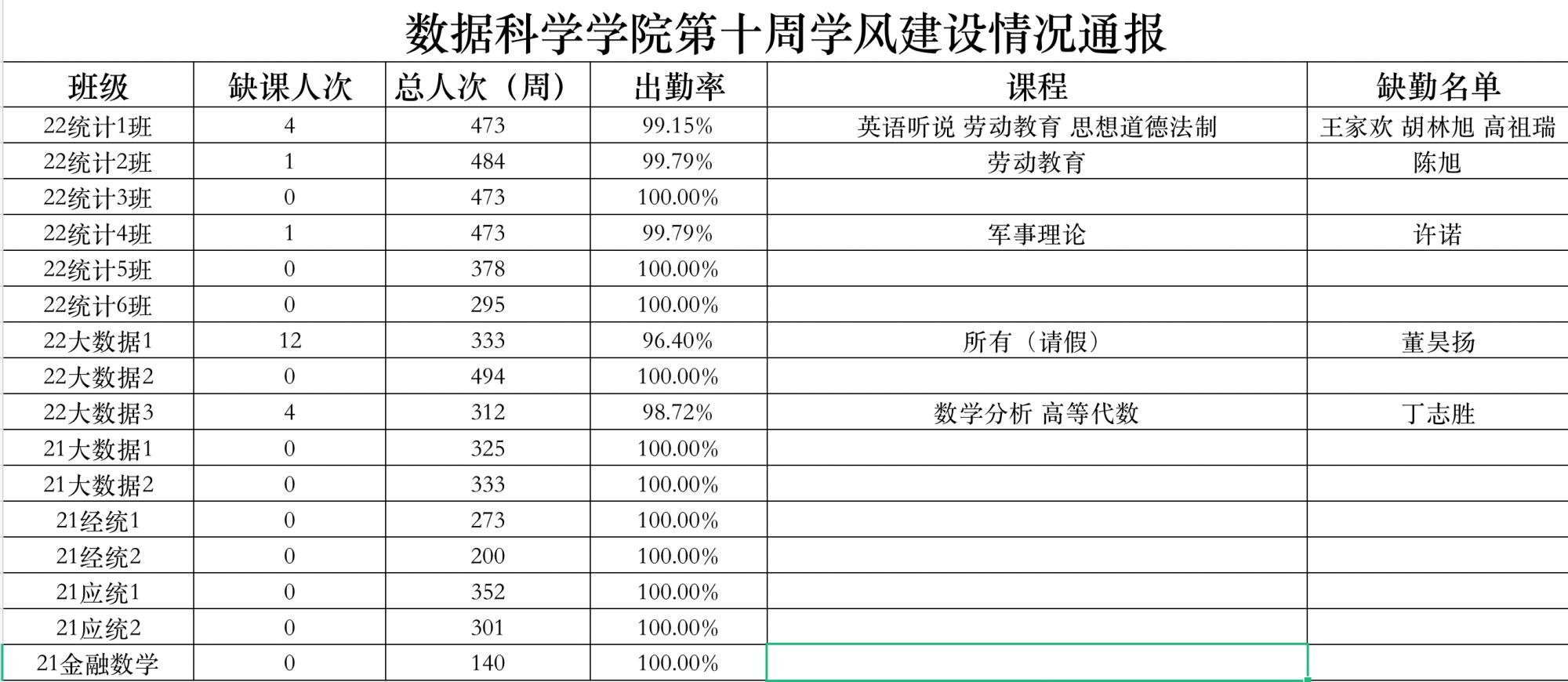 为进一步培育优良学风,构建我院学风建设的长效机制,营造良好的学习氛围,推进内涵建设,构建优良院风,学院对所有大一、大二班级统一上的课程及晚自习进行了课前全覆盖点名。现将点名情况做如下通报。