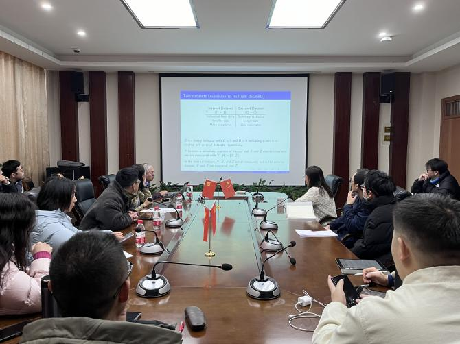 12月13日下午,威斯康星大学麦迪逊分校邵军教授应邀为我院师生做了一场题为“A GMM Approach in Coupling Internal Data and External Summary Information with Heterogeneous Data Populations”的学术讲座。讲座由数据科学学院教师楼芝兰主持,学院部分老师及研究生参加了讲座。