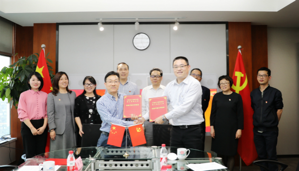 卢新波与吴杰分别代表双方签订党建共建合作协议。