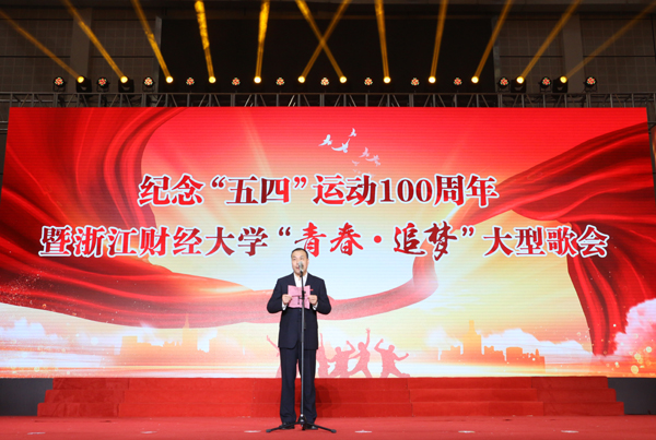 本网讯4月28日,学校纪念五四运动100周年大型歌会在下沙校区举行。党委书记李金昌等校领导、部分职能部门负责人、各学院分管学生工作副书记及师生代表等1600余人参加活动。