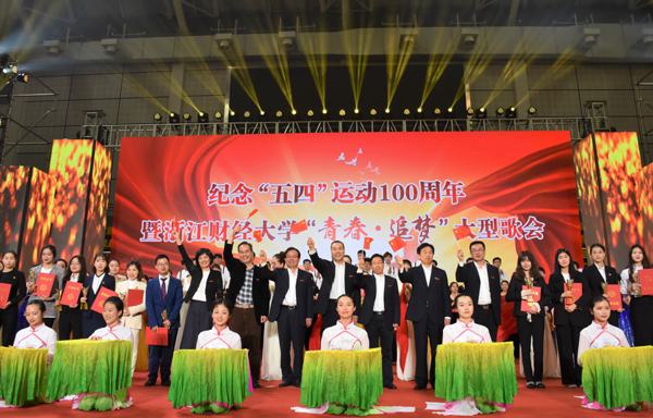 五四百年继薪火,青春奋进新时代。本次活动旨在纪念五四运动100周年,传承优秀青年精神,表彰先进,弘扬光荣传统,传递爱国情怀。希望全体浙财学子不忘初心,砥砺前行,在党的领导下,勇做走在时代前列的奋进者、开拓者、奉献者,以执着的信念、优良的品德、丰富的知识、过硬的本领,同全国各族人民一道,担负起历史重任,让五四精神放射出更加夺目的时代光芒。