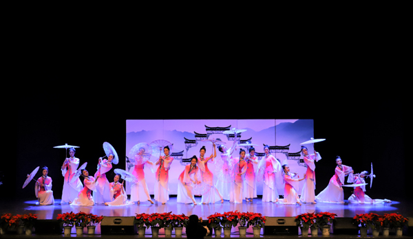 晚会在歌舞《我和2035有个约》中拉开序幕。结合了民乐、朗诵、舞蹈和汉服秀等多种形式的音诗画表演《大鱼》,为观众们带来了一场体验非凡的视听盛宴。青藤话剧社的暖心之作《树》,在让观众们捧腹大笑的同时,也引发了对“父母恩,深似海”的思考。由新生辅导员和班导代表带来的歌舞表演《最好的舞台》,瞬间将全场气氛推向了高潮。校舞蹈队表演的古典舞《小城雨巷》和民族舞《振鹭于飞》,以飘然若仙的舞姿,再配上馨心淡雅的乐曲,充分展示了我校学子深厚的艺术功底,赢得了现场观众的阵阵掌声。最后,伴随着合唱歌曲《幸福新起点》,晚会圆满落下了帷幕。