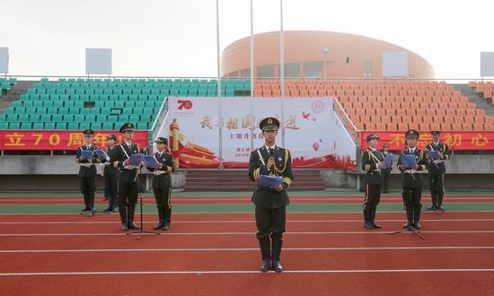 校党委书记李金昌为全场师生讲授“国旗下思政课”。他指出,70年来,在中国共产党的坚强领导下,中华民族迎来了从站起来、富起来到强起来的伟大飞跃。70年,新中国的经济实力和综合国力大幅跃升、人民生活水平极大改善、文明程度显著提升、国际地位空前提高,书写了中国历史上乃至人类历史上前所未有的发展奇迹。我们必须毫不动摇坚持中国共产党的领导,必须毫不动摇坚持中国特色社会主义道路,必须毫不动摇坚持以人民为中心的价值导向,必须毫不动摇坚持解放思想、实事求是。