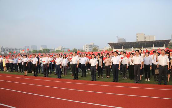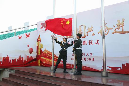 本网讯9月30日,学校隆重举行“我与祖国共奋进”主题升国旗仪式,庆祝中华人民共和国成立70周年。全体校领导,职能部门主要负责人,各分党委(党总支、直属党支部)书记、副书记,辅导员,学生代表1500余名师生参加仪式。仪式由校党委副书记卢新波主持。