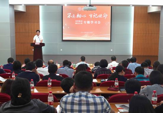 李金昌强调,广大党员领导干部要切实加强党性修养,做到严以修身、严以修身,严以用权,严以律己,树牢立身、立业、立言、立德的基石。要牢固树立纪律和规矩意识,真正把各项纪律规定内化于心、外化于行。要懂法纪、明规矩,知敬畏、存戒惧,不断坚定初心意识,牢记使命任务,以更加饱满的工作热情,更加昂扬的精神状态圆满完成各项工作任务,为学校高质量发展奠定坚实基础,以优异成绩为中华人民共和国70周年华诞献礼。