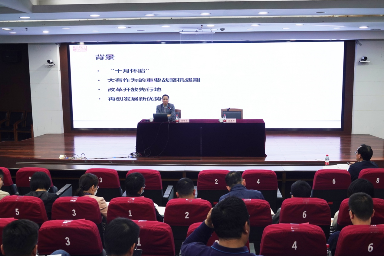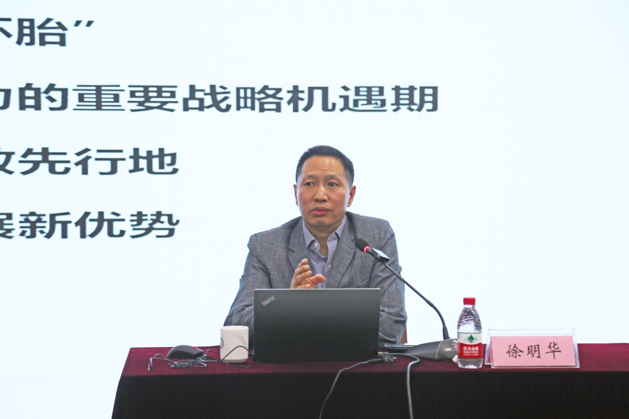 徐明华教授围绕“‘八八战略’的背景、内涵与意义,省域层面的先行探索,从地方经验到治国之道”三个层面,对习近平总书记在浙江工作期间提出的“八八战略”的重要意义、精神内涵、实践价值等进行了深入阐释和全面讲解。他表示,“八八战略”是习近平同志在总结浙江经济社会发展经验、深入分析面临问题的基础上提出来的,是浙江改革发展的总纲领和总方略。“八八战略”坚持和发展了马克思主义的实践性品格,是深入实际、调查研究的结晶,是中国特色社会主义与浙江具体实际相结合的创造,既体现了中国特色社会主义的本质要求,又抓住了浙江发展的特点,是从省域层面率先开启了探索中国式现代化的生动实践。