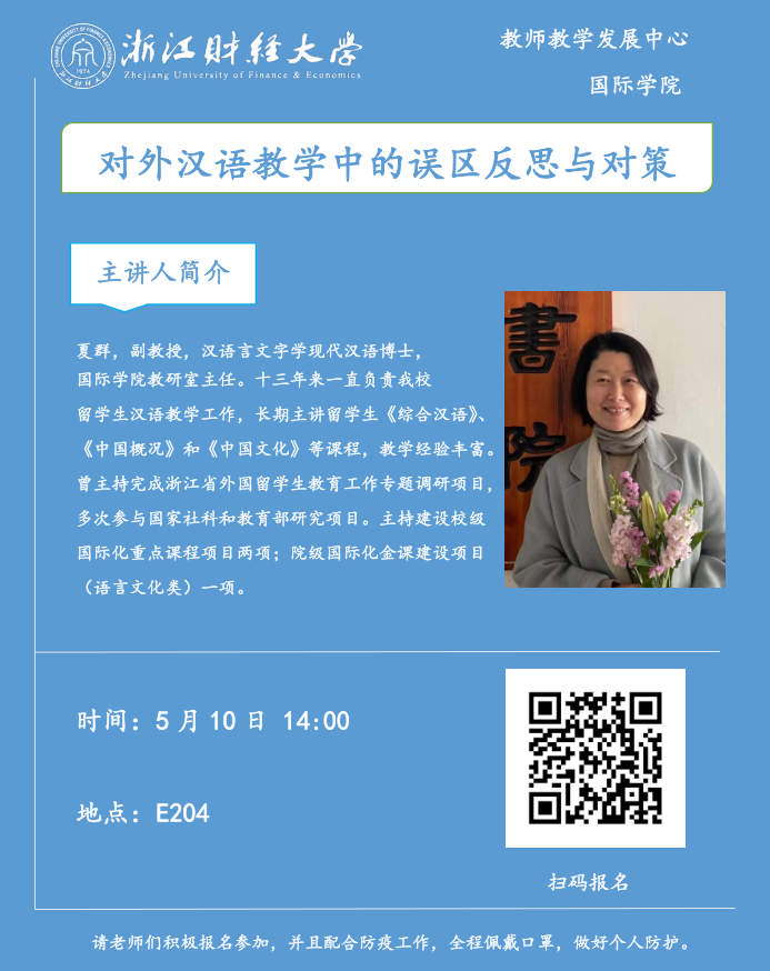 来华留学生专项教师教学发展系列活动(四):对外汉语教学中的误区反思与对策 发布时间:2022-05-09点击量:次 上一条:教发活动预告(三):将使命落实到行动 从抽象上升到具体 下一条:来华留学生专项教师教学发展系列活动(三):国际学生线上线下一流课程建设方法与路径