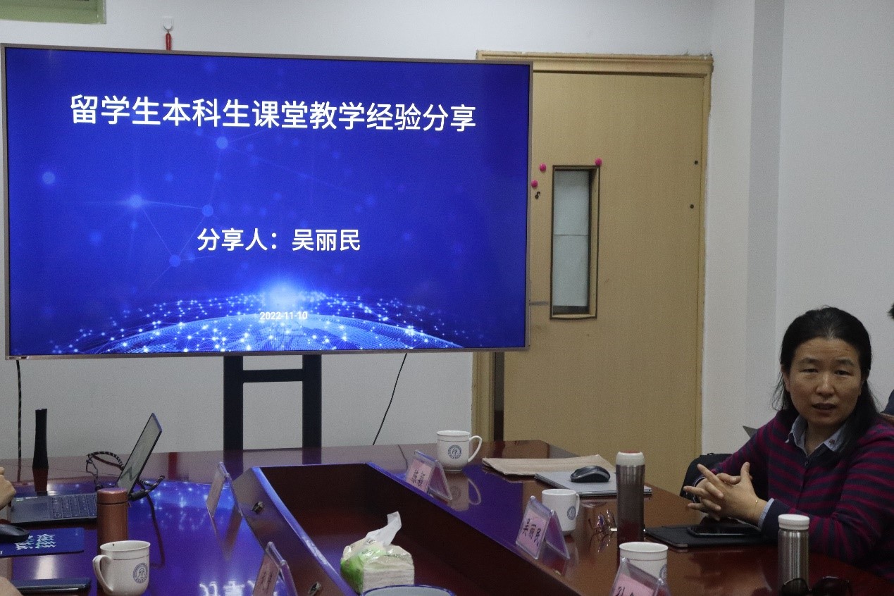 2022年11月10日下午,工商管理学院和国际学院联合主办了留学生教育项目首次集体备课活动。本次活动在国际学院E103A会议室展开。会议邀请了市场营销系主任陈颖老师和工商管理系主任吴丽民老师就“校级国际化重点课程项目申报经验分享”和“留学生本科生课堂教学经验分享”两个话题分别发表演讲。国际学院院长柴志贤老师、工商管理学院副院长张雷老师,以及来自工商管理学院、国际学院和会计学院的多位留学生课程任课老师参加。