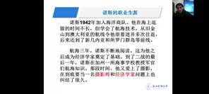 本期讲座分为三个部分,第一部分朱教授讲述了诺斯的成长经历,让我们生动立体地认识这位经济学伟人:他有过多彩快乐的童年,被音乐和摄影围绕着;他多次搬家,甚至在被哈佛大学录取的情况下选择离家近的大学,活脱脱的成绩好任性典范;但就算他再优秀,在大学里也不是名列前茅的好学生;被马克思主义折服选择海洋商队,很短时间内又掌握航海技术,一切经历,谱成他独有的华丽乐章,演奏出他为经济学吹响的金曲。