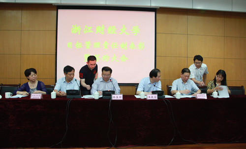 颁奖仪式结束后,学校举行了第二轮目标管理责任制签约仪式。校党委书记韩翼祥、校长王俊豪和财政与公共管理学院、会计学院、法学院、人文学院4个教学单位代表,以及学生处、人事处、科研处、研究生处4个非教学单位代表签订了第二轮目标管理责任书。