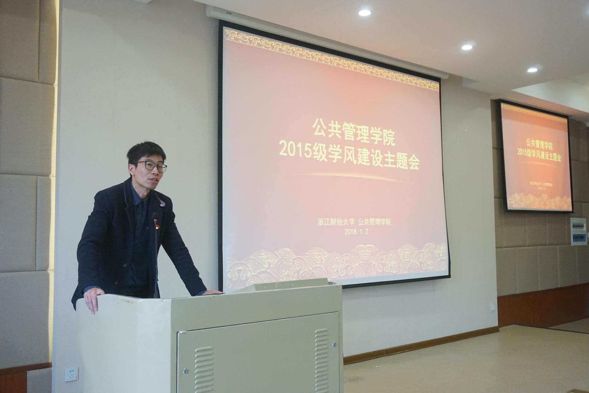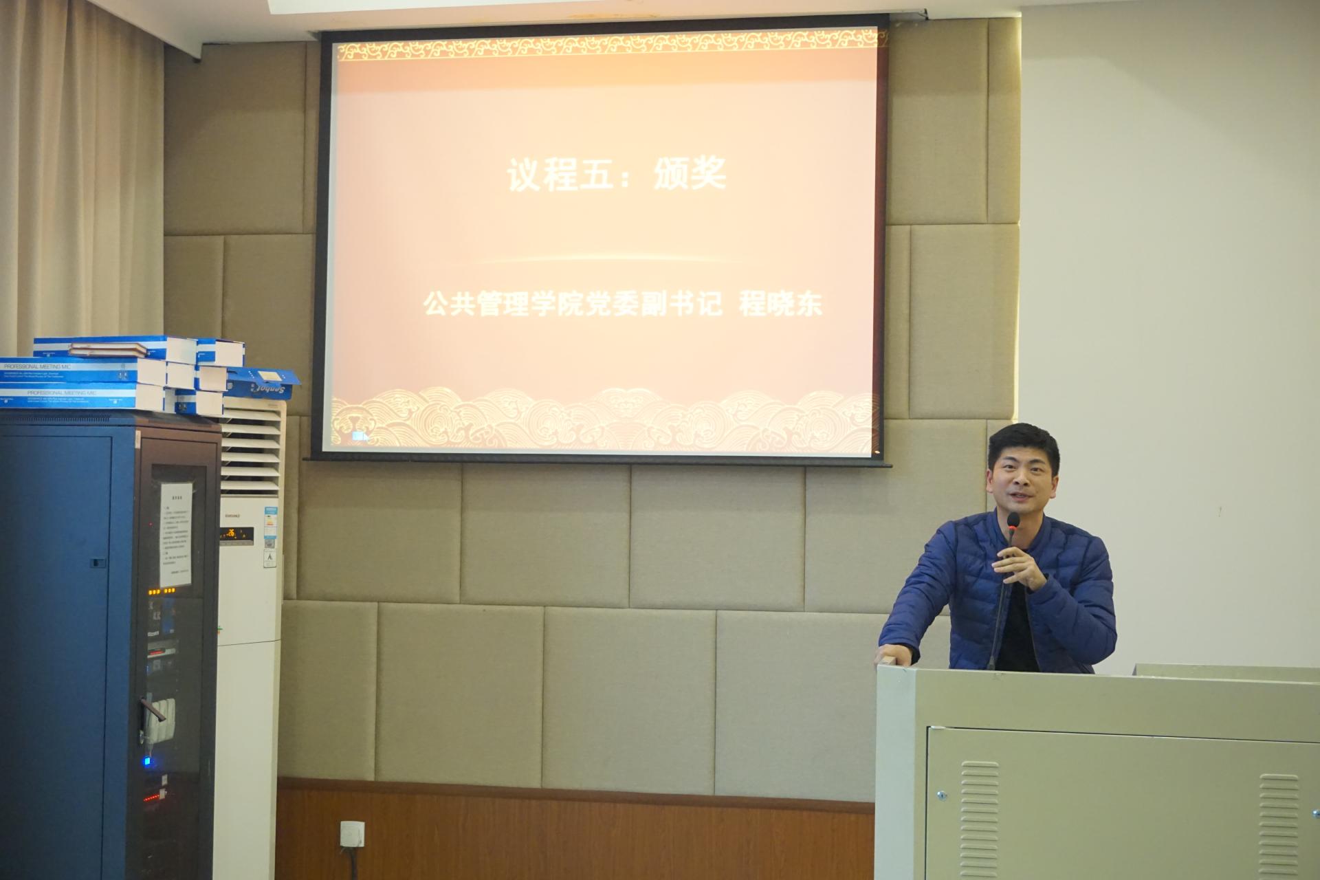 会上还对2017年度公共管理学院“学风建设先进班级”进行表彰,程晓东副书记为获得先进班级的2015级班级代表颁奖。