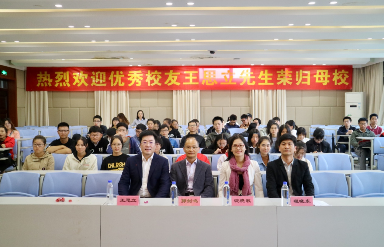 王思立校友重温了大学时代的点滴记忆以及毕业后就业、创业等发展历程,与同学们分享励志故事,交流心得体会,畅谈人生感悟,全程充满对母校和老师的感恩之情。他鼓励同学们尽早明确生涯规划,敢想敢拼,不畏艰难,以高效的学习能力面对不同挑战。他诚恳朴实的话语、催人奋进的事迹引发同学们的广泛共鸣。现场掌声不断,气氛活跃。