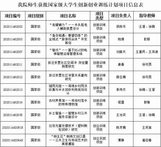 近日,教育部高等教育司公布了2020年国家级大学生创新创业训练计划项目名单,我院申报的10个大学生创新创业训练计划项目获批立项。
