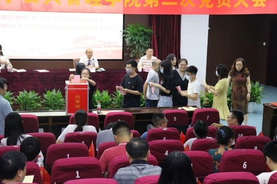 此后,大会还审议通过了党费收缴使用情况报告、大会选举办法和监计票人名单。在庄严有序的氛围下,大会按照民主程序以无记名投票的方式,选举产生了第二届中共ued体育 公共管理学院委员会和中共ued体育 公共管理学院纪律检查委员会。