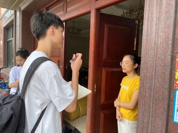 后续几天,团队成员跟随双联村支部书记沈晓丹走访了一些双联村村民,深入了解疫情对双联村居民生活收入的影响。通过走访,团队成员收集到本地从事家庭纺织业的家庭较多,订单量受影响只有往年五六成。但当地政府积极鼓励当地居民,制定了一些的政策补贴居民收入损失并刺激消费。