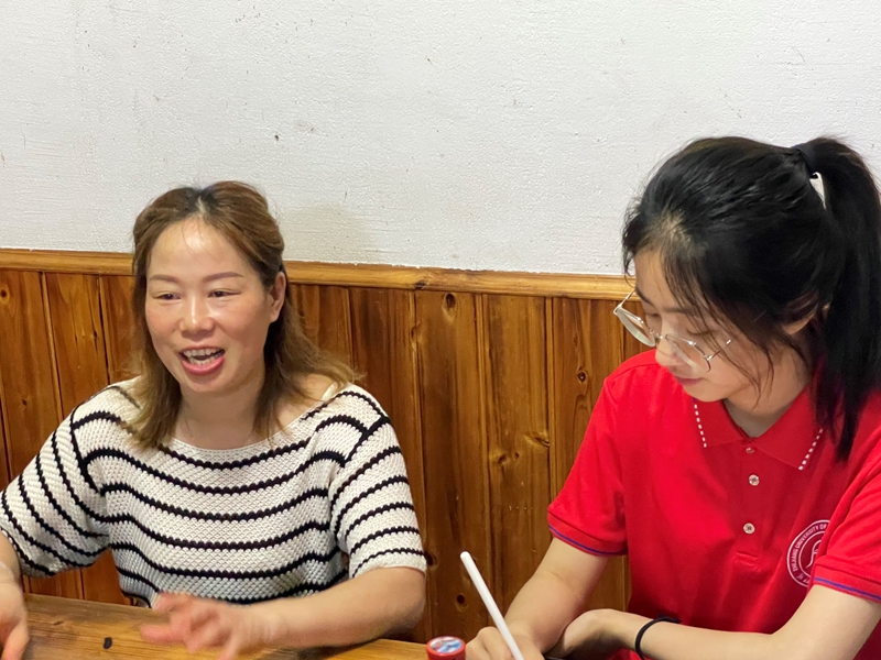 “以前我老公在杭州打工,我带着孩子在镇上的菜场买菜补贴家用,那时候最开心的时候就是过年能买上一件家用电器……”民宿老板张姐正在和ued体育 的同学们一起回忆十多年前的生活。