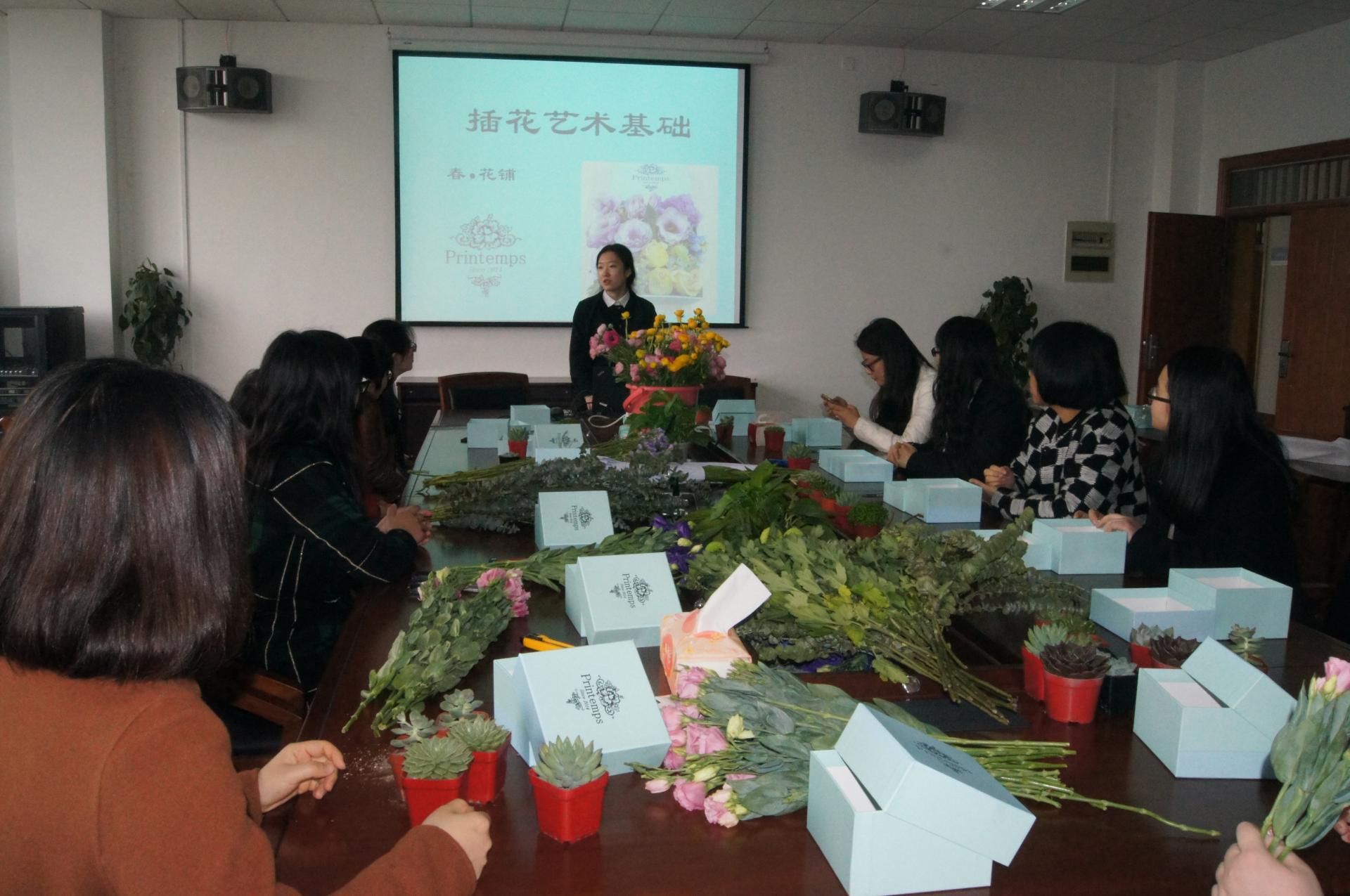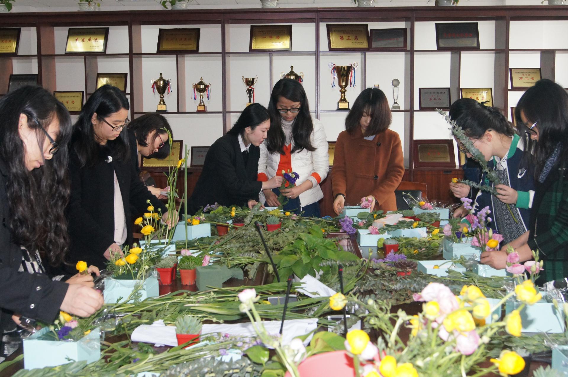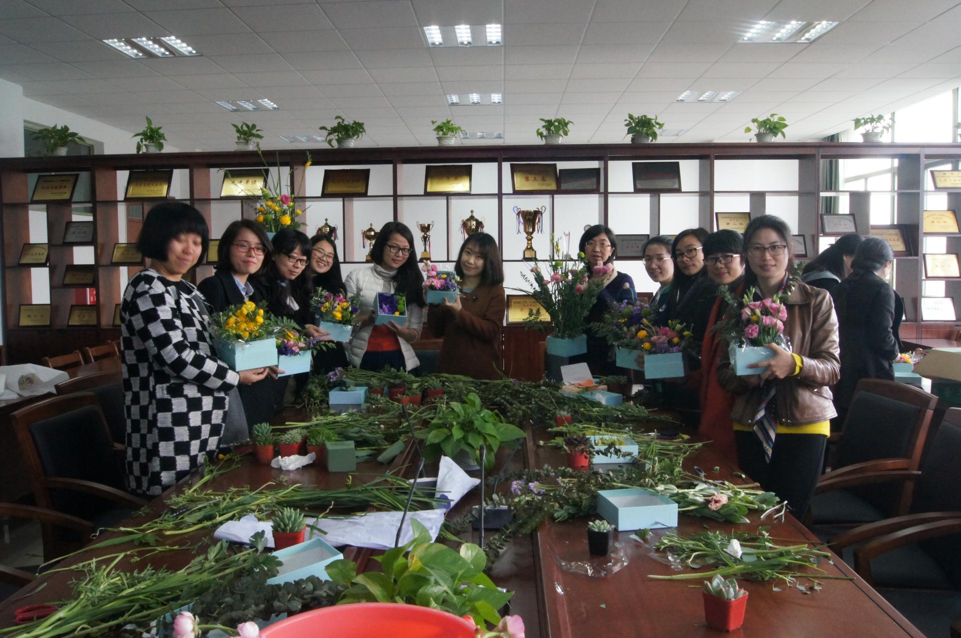 3月22日上午,为欢庆三八节,经济学院分工会在6号学院楼313会议室开展了以“姹紫嫣红春有时,五颜六色竞争艳”为主题的插花活动,学院全体女教职工都踊跃参与了此次活动。