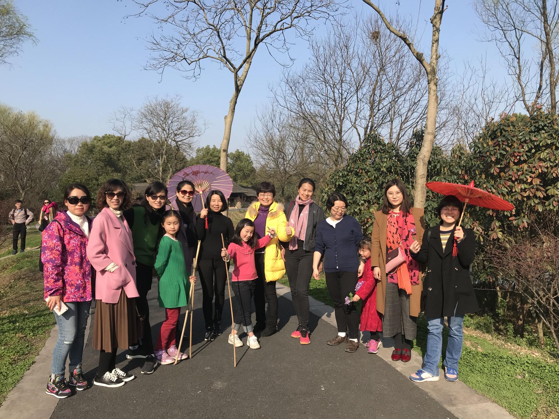 活动从西溪湿地的河渚街开始,大家有说有笑地漫步在街的两旁,观看着街两侧的民俗特色。走到了河渚街的汝拉小镇,女同胞们坐下来歇息、喝茶、聊天,还在露台上观赏整个街区的美景。然后大家坐上了电动船畅游西溪湿地,老师们都感叹空气的清新、溪水的清澈、树木的青翠,大自然一切的一切都是那么的自然,坐船的途中大家还上岸观赏了盛开的梅花,在清新的梅林间漫步,老师们仿佛置身于仙境,大家竞相合影留念。