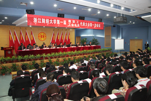 大会号召全校教职工、工会会员要在学校党政的领导下,更加紧密地团结起来,正确认识学校发展面临的新形势和新任务,抓住机遇,进一步振奋精神,凝心聚力,真抓实干,大力推进学校各项事业的发展,在建设特色鲜明的高水平财经大学征途上,谱写更加辉煌灿烂的篇章。