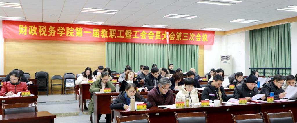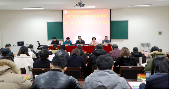 1月18日,财政税务学院第一届教职工暨工会会员大会第三次会议在1号楼106隆重召开,学院全体教职工参加了会议,会议由学院副院长司言武主持。