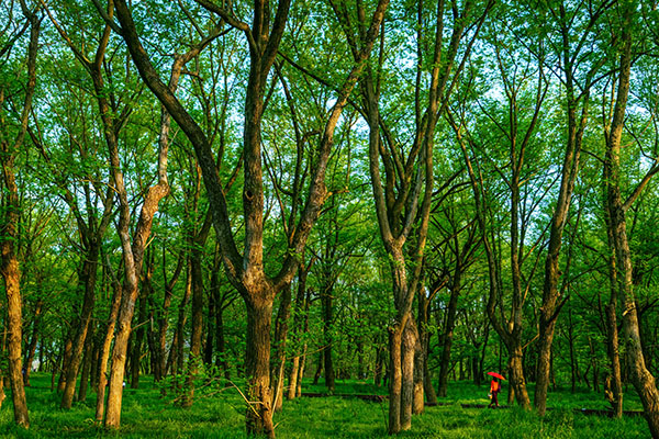 在桐洲岛的尽头,一脉富春江水孕育出一片绿意盎然的杨树林。在杨树林里行行摄摄,牛儿在暮光里悠闲的吃着青草,树是绿的,草是绿的,恍若步入仙踪绿野,好在那透过杨林枝叶缝隙投下的缕缕阳光,不时把恍入仙境的你拉回到现实中来。