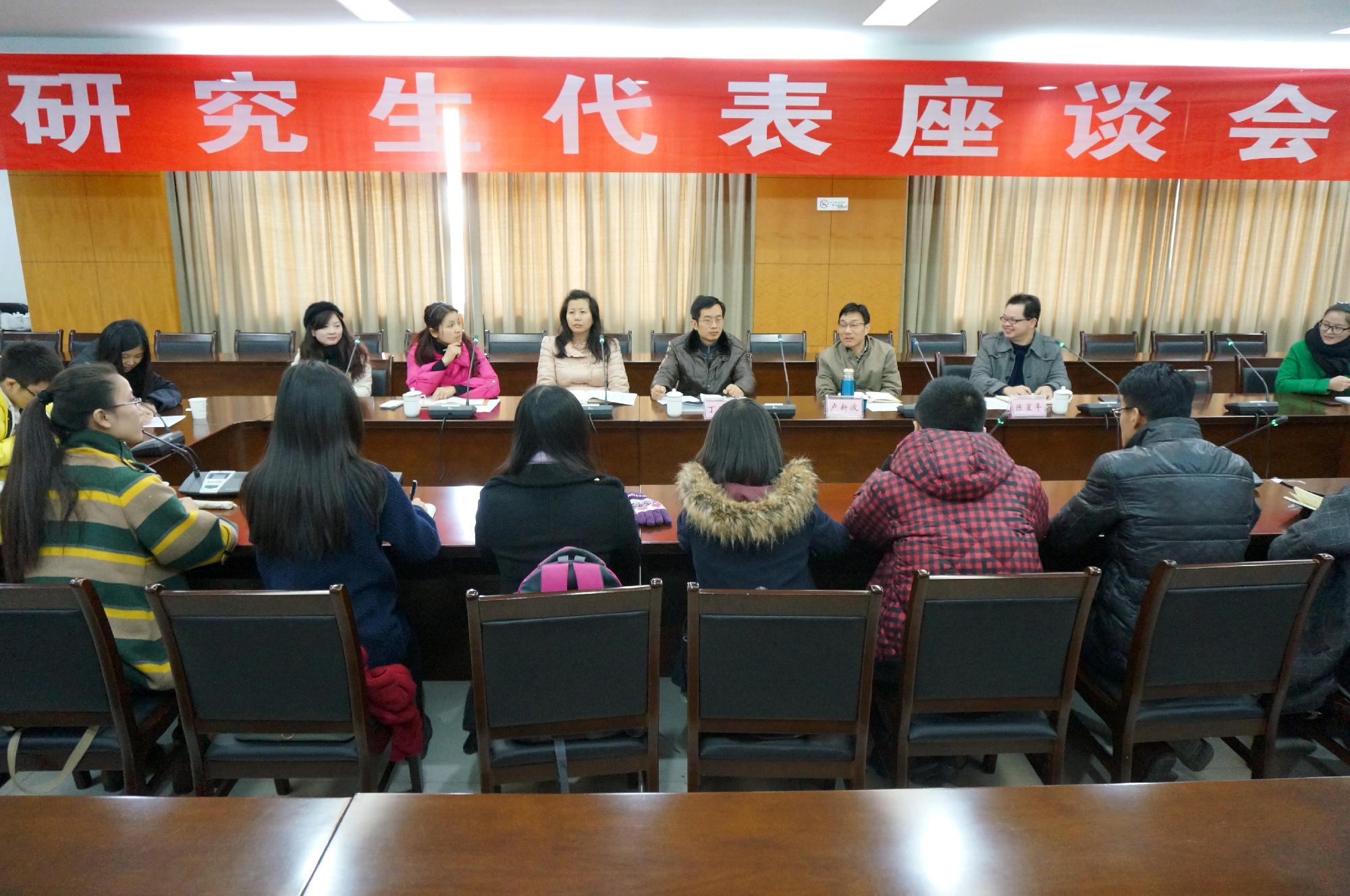 卢新波副校长在听取大家发言后指出,感谢同学们对学校工作的理解及支持,在学校条件不尽如人意的情况下依然保持良好的学习风貌,为学校的改革与发展作出了积极的贡献。学校将认真梳理同学们的意见和建议,近期能解决的马上解决,需要一定时间解决的将尽快落实。卢副校长最后希望同学们规划好研究生阶段的学习生活,利用好研究生阶段的空闲时间,在导师的指导下加强自主学习,注重读、写、说等能力的培养和训练,以积极的心态,高度的热情投入到学习、生活中去,把自己培养成专业能力强、综合素质高的优秀人才。