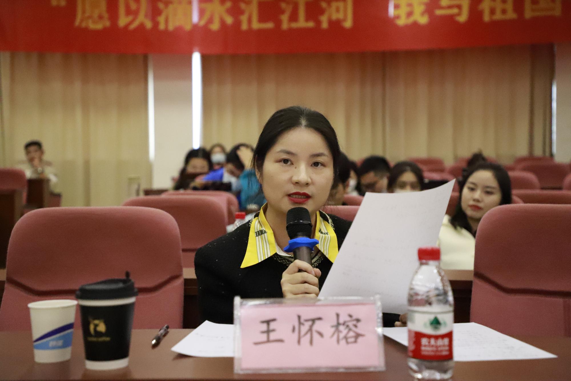 决赛现场,选手们结合自身学习体会与成长经历,以饱满的激情、生动的语言,展示了对“愿以滴水汇江河 我与祖国共成长”的深刻理解,抒发了对党、对祖国的热爱之情,坚定了为理想矢志奋斗的信念,彰显了新时代青年有理想、敢担当、能吃苦、肯奋斗的精神面貌。人文与传播学院王怀榕老师对选手的参赛表现作了精彩点评。
