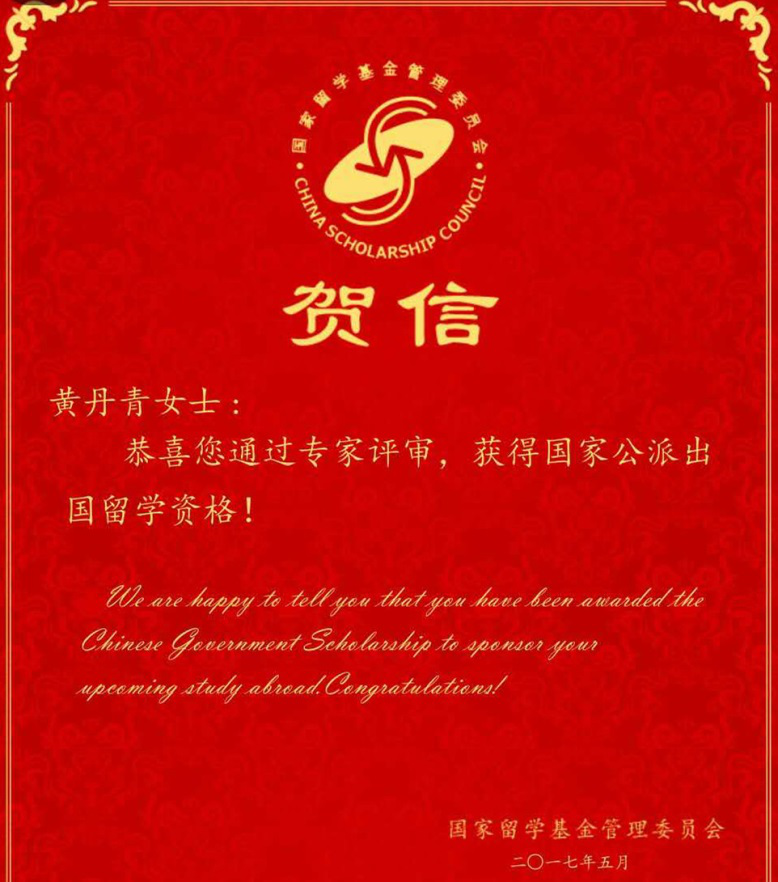 近日,国家留学基金委员会公布,我校外国语学院2014级研究生黄丹青(指导教师:邵斌)同学通过“国家建设高水平大学公派研究生项目”专家评审,获得国家公派出国留学资格。