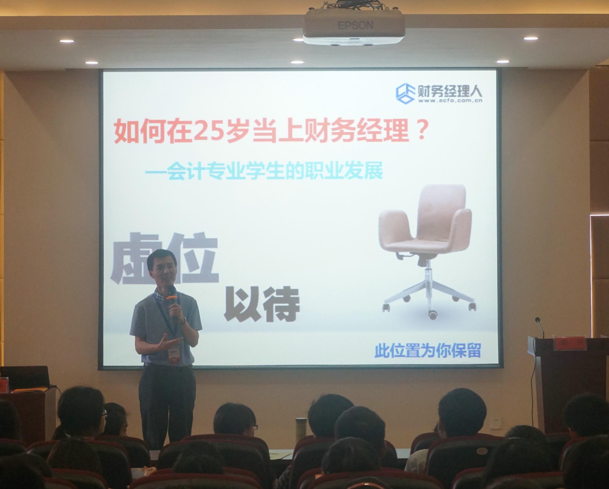 5月19日下午,会计学院专业硕士学位研究生品牌活动“企业财务高管论坛”2015年第3期在会计学院楼211报告厅顺利举行。本次论坛的主题为“会计专业学生的职业发展——如何成为优秀的财务经理”,由才智东方董事长、清华大学总裁班特聘讲师、中央财经大学客座教授武学东老师主讲。学院副院长邓川老师主持了本次讲座,会计学院研究生和高年级本科生共150位同学参加了此次讲座。