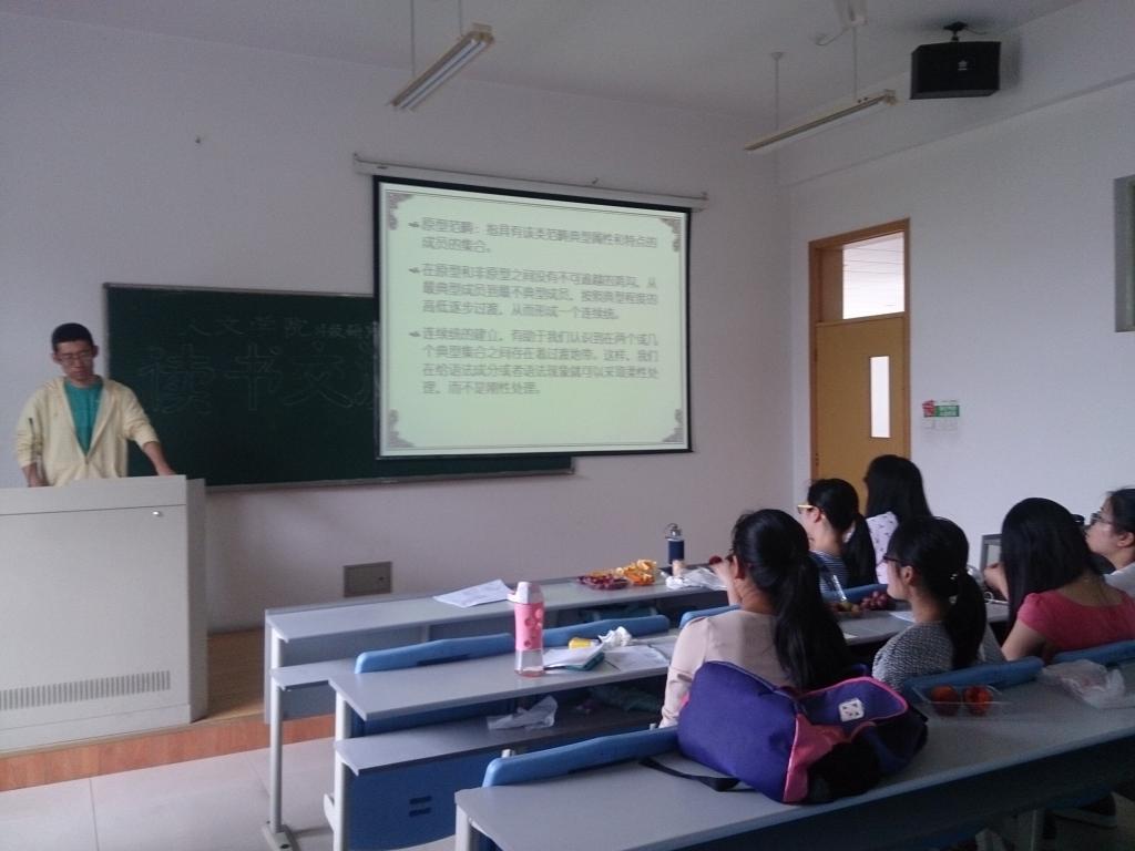本次活动的主题是“领悟文字语言之美”。首先,主讲刘正印同学和大家分享了自己最近读书学习的感悟,并以PPT的形式向大家展示自己的学习成果,以 “句法语义的认知解释”为题作了学术汇报,其间同学们积极提问、热烈讨论,对刘正印同学讲的内容提出意见和补充建议。接着,同学们纷纷拿出准备好的交流材料,有分享近期自己的读书体会的,有向大家请教学术问题的,有交流自己相关研究方向的学术动态的,现场气氛十分热烈。最后,大家还评选出本次读书交流会的“最佳发言”,分别是:肖潇、高晓岑、李树科。