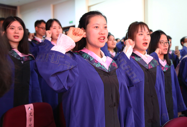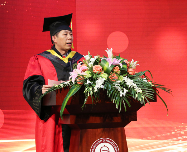 校党委书记李金昌以“胸怀祖国 志存高远 笃实力行 做新时代的追梦人”为主题发表了热情洋溢的讲话。他代表学校向顺利完成学业的2019届毕业生表示祝贺,同时也对同学们提出了殷切期望:要胸怀祖国,做一个心有大爱的追梦人,把人生同民族的命运紧密联系在一起,把爱国情、强国志、报国行自觉融入到建设社会主义现代化强国、实现中华民族伟大复兴的奋斗之中;要志存高远,做一个信念坚定的追梦人,始终以积极乐观的心态笑对人生荆棘,以宽容积极的心态去处理人际关系,以淡然平常的心态去衡量工作中的成败与得失;要笃实力行,做一个脚踏实地的追梦人,坚持脚踏实地、埋头实干,一点一滴地积累,一步一个脚印地收获,真正地做到学、思、用贯通,知、信、行统一。