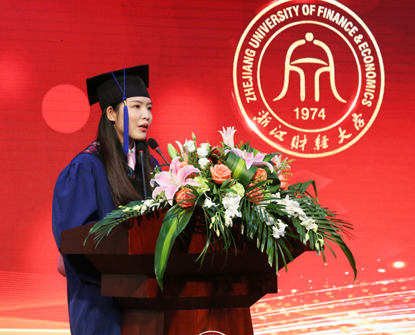 导师代表张帅、毕业生代表王嘉慧、在校研究生代表付伟康分别在典礼上发言,毕业生代表张凯带领全体毕业生宣读毕业誓词。