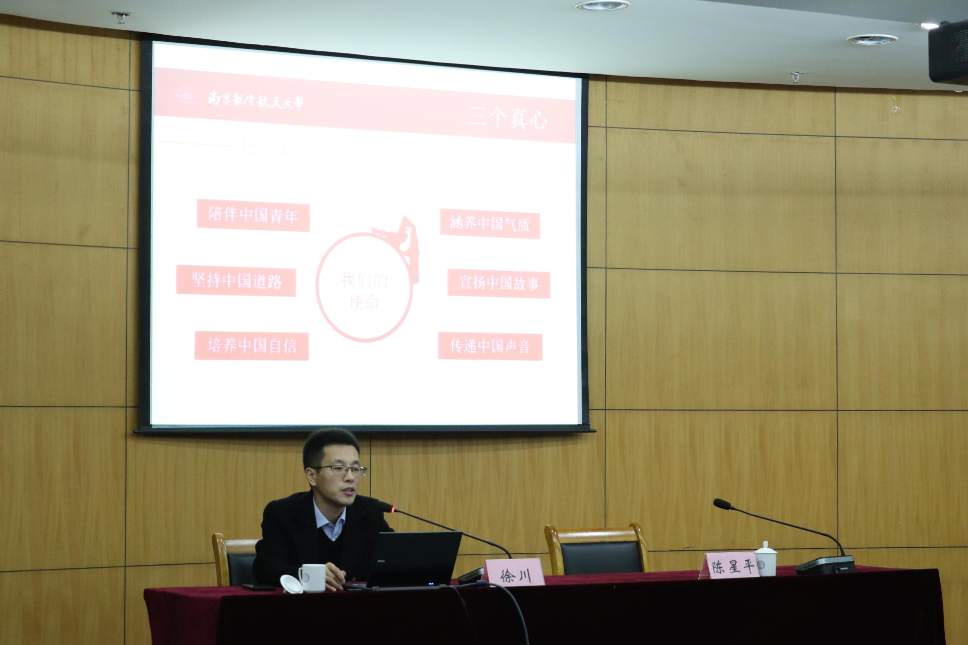 11月25日下午,党的十九大代表、共青团江苏省委兼职副书记、南京航空航天大学马克思主义学院党总支书记徐川应邀来到我校,作了题为“诚意正心,以道驭术,谈谈思政工作法” 的专题报告。报告会由党委研工部副部长陈星平主持,各学院党委副书记、辅导员、研究生秘书和研究生兼职辅导员等共计130余人到场聆听。