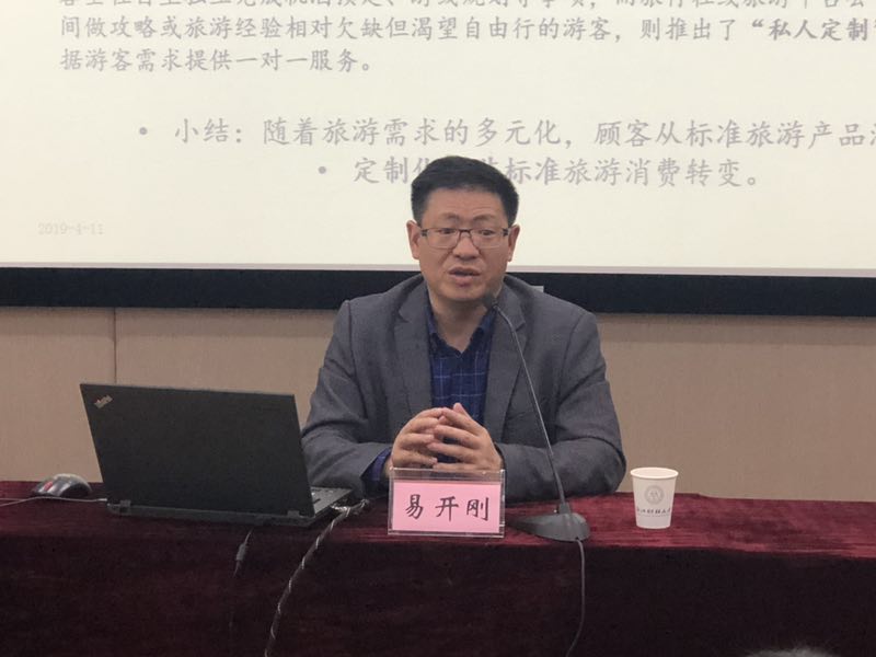 4月11日下午,研究生博文大讲堂第十二讲在图书馆多功能报告厅举行。浙江工商大学旅游与城乡规划学院院长易开刚教授应邀为我校研究生做了主题为“身旅心游:在对话世界中塑造人生”的专题报告,近100名师生到场聆听。