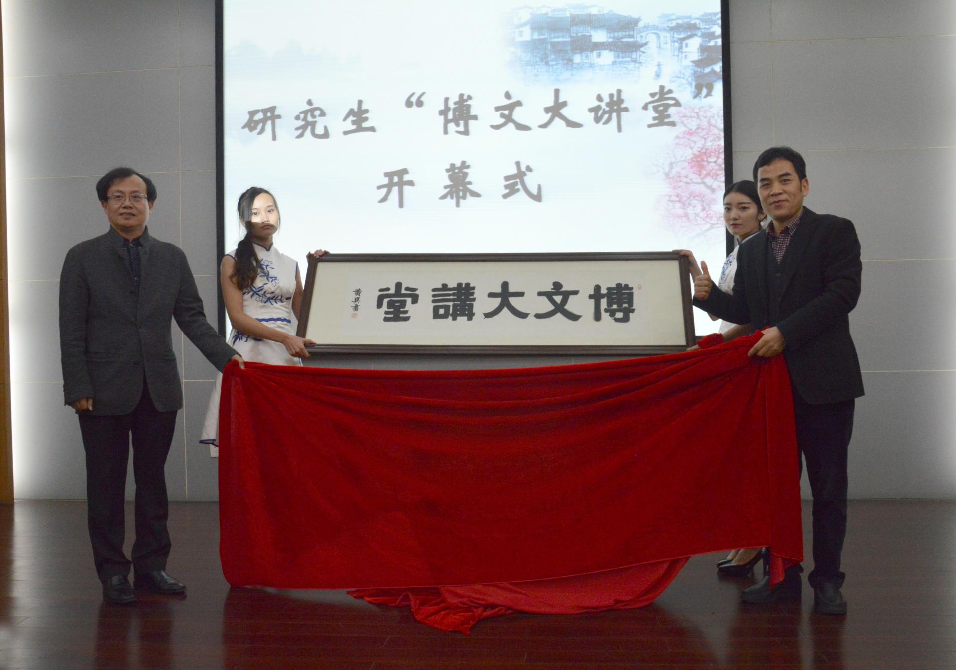 黄建新副校长为“博文大讲堂”亲笔题字,并与研究生院院长张雷宝为其揭幕。