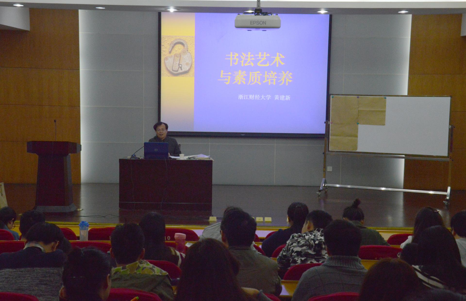 开幕式后,黄建新副校长为“博文大讲堂”作第一讲,以“书法艺术与素质培养”为主题,从中国书法艺术及其现状、中国书法艺术的功能和学习方法三个方面,与在座研究生分享了传承千年的中国书法文化和个人研习心得,以精彩的现场展示和风趣幽默的讲解赢得了同学们的阵阵掌声。讲座结束后,黄校长与同学们亲密互动,并向大家题字赠书。